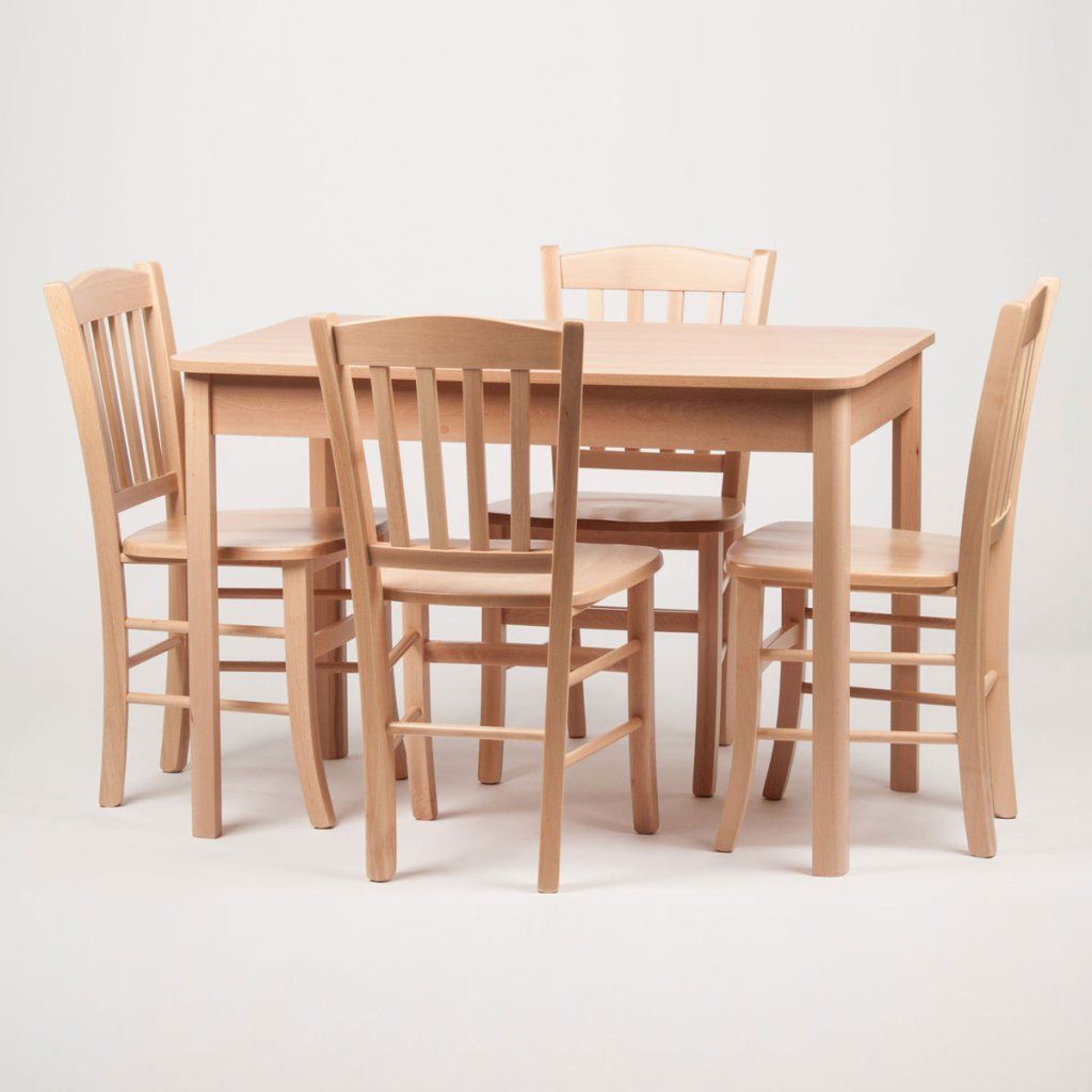 Stůl a 4 židle z bukového dřeva.