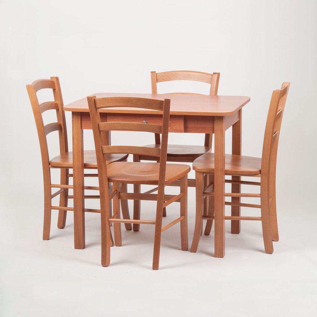 Stůl a 4 židle z bukového dřeva.