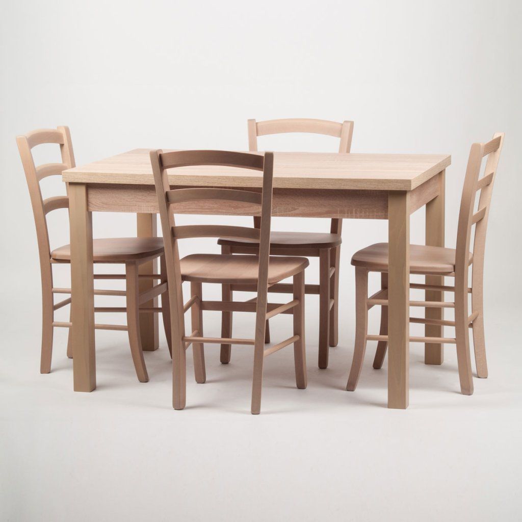 Stůl a 4 židle z bukového dřeva.