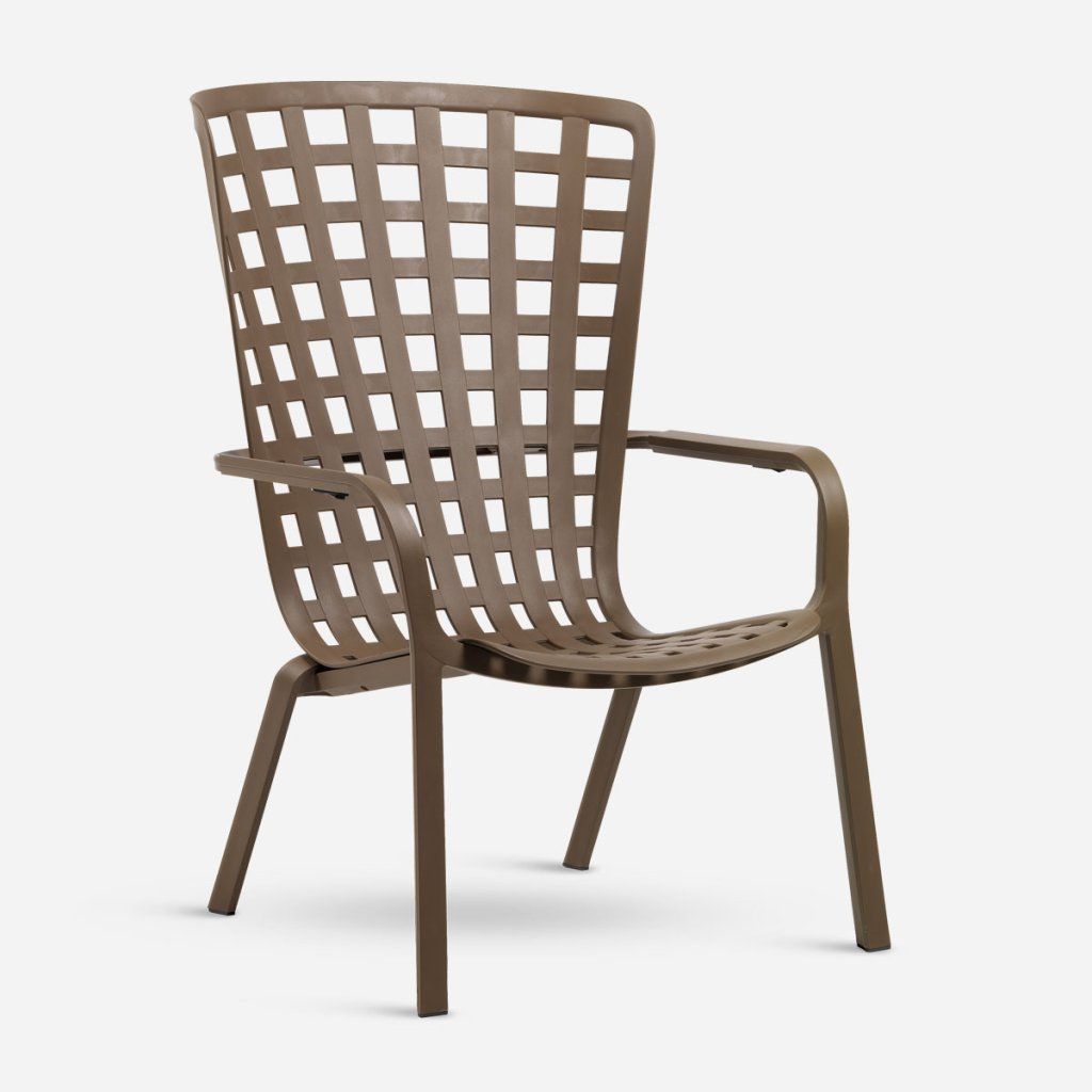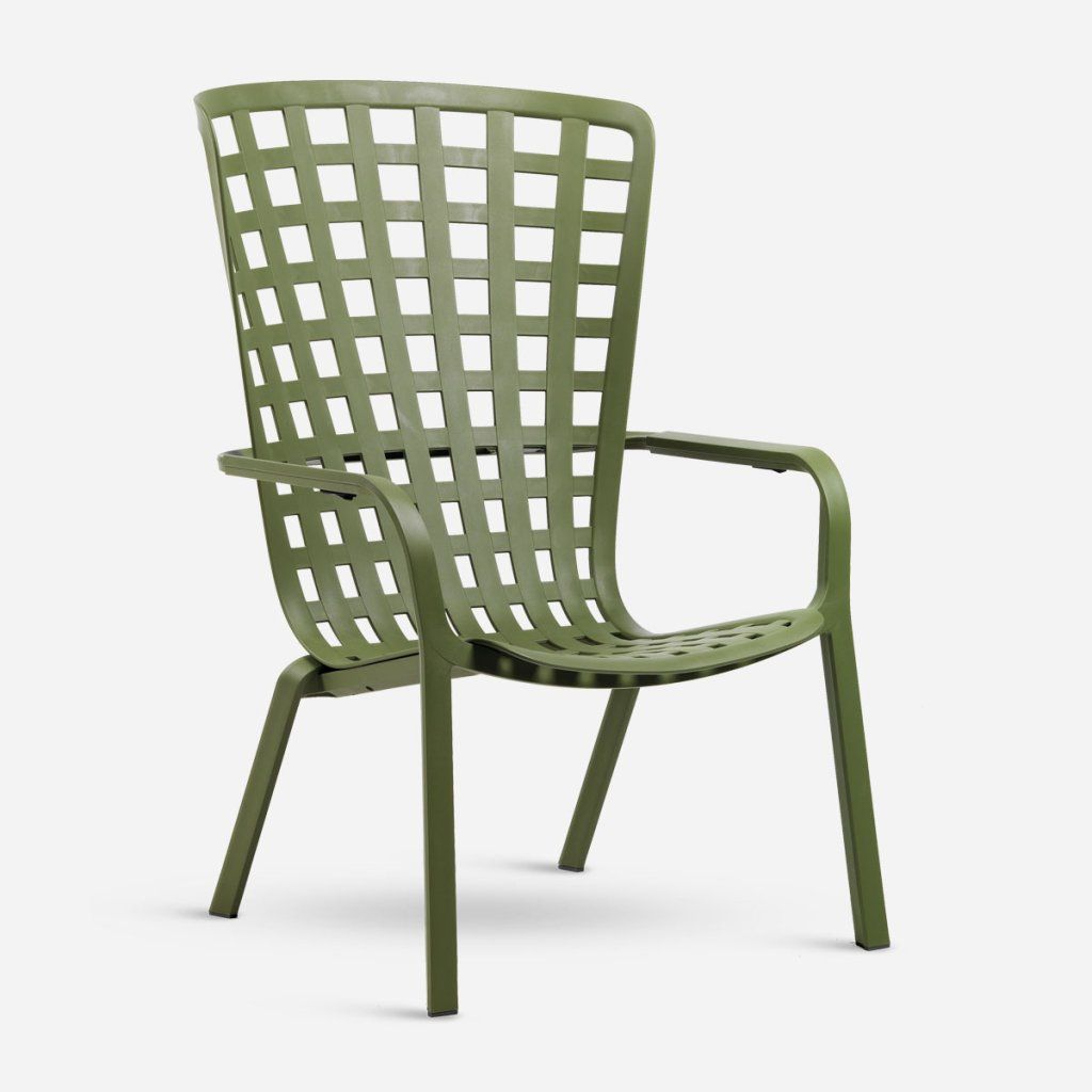 Folio je venkovní relaxační křeslo vyrobené z perforovaného polypropylenu s károvanými motivy a matným povrchem. Křeslo má obepínající opěradlo plynule spojené s velkoryse sníženým sedákem, jedinečným a rafinovaným strukturálním objetím, které lze sklopit do dvou pohodlných poloh. Záruka barevné stálosti. Stohovatelné a voděodolné.