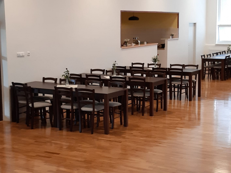 Do veřejných prostorů obecního sálu v Dubnici jsme dodávali přes 200ks restauračních židlí PAYSANE společně s 50 kusy jídelních stolů CASA MIA. Na čalouněný sedák se vybrala látka BEKY LUX, která disponuje funkcí AQUACLEAN, což umožnuje velmi snadnou péči o čalouněný sedák. Díky této funkci stačí sedák otřít vlhkou utěrkou a všechna nečistota bude ze sedáku odstraněná a bude jako nový.