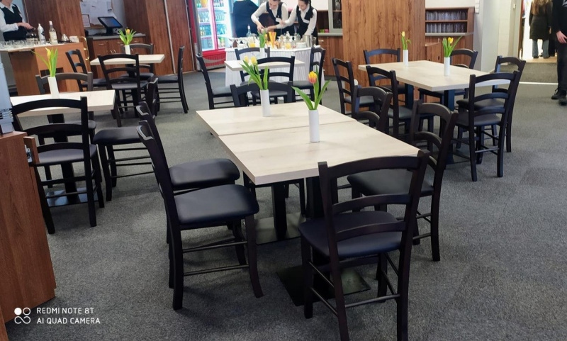 Střední škola gastronomie a služeb provozuje také restauraci, kde vaří a obsluhují studenti místní školy. Jelikož se jedná o zátěžový provoz, společně se školou jsme vybrali židli PAYSANE COLOUR v černém laku. Tato židle je bezpochybně tou nejlepší volbou do zátěžového provozu. Židle je nastříkána hned několika vrstvami ochranného laku, který židli chrání před poškozením.