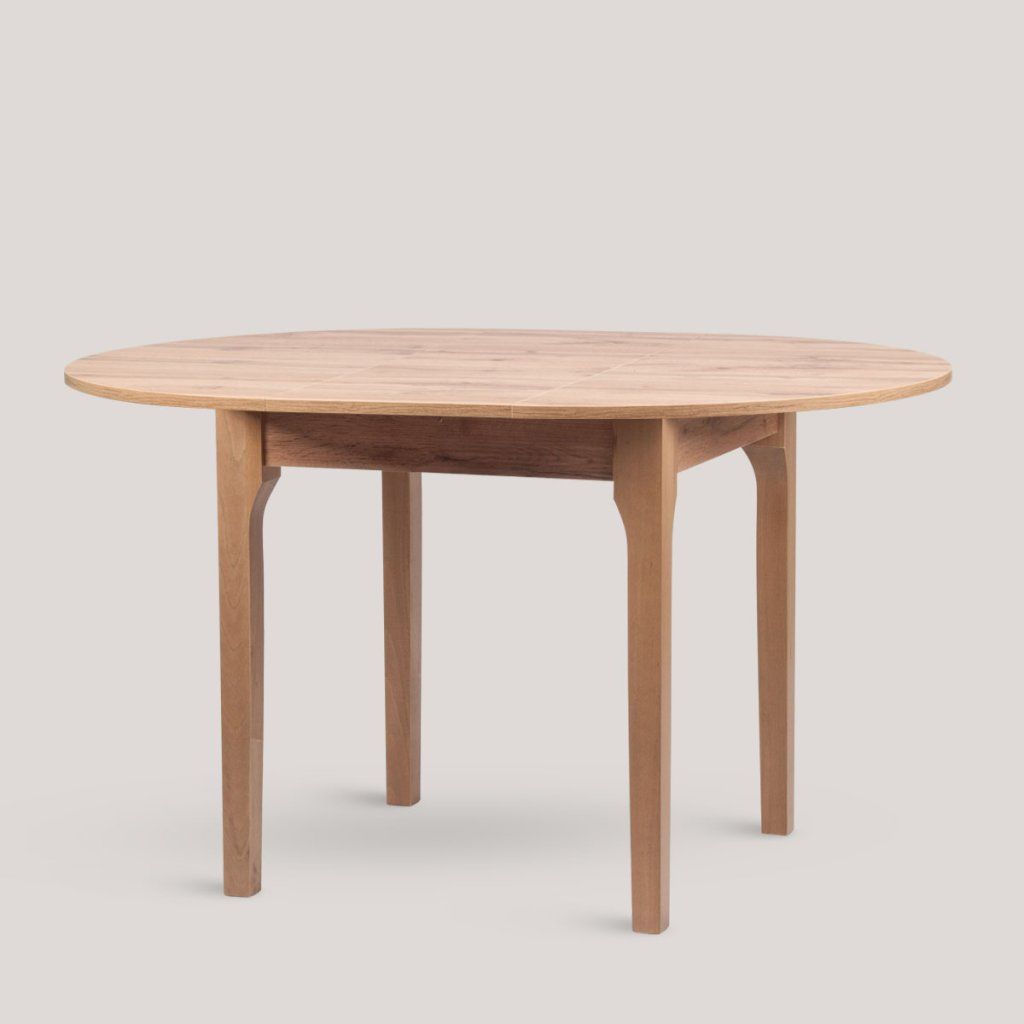 Jídelní stůl zaujme oválnou deskou s odolným lamino povrchem, který je nenáročný na údržbu a vhodný pro každodenní použití. Zaoblený tvar přispívá k pohodlnému sezení a lepšímu kontaktu u stolu. Konstrukci tvoří pevné nohy z masivu, které zajišťují stabilitu a dlouhou životnost. Stůl je dostupný také v rozkládací variantě, díky které snadno zvětšíte jeho plochu podle aktuální potřeby. Skvěle se hodí do domácností i jako praktické řešení do menších komerčních prostor.